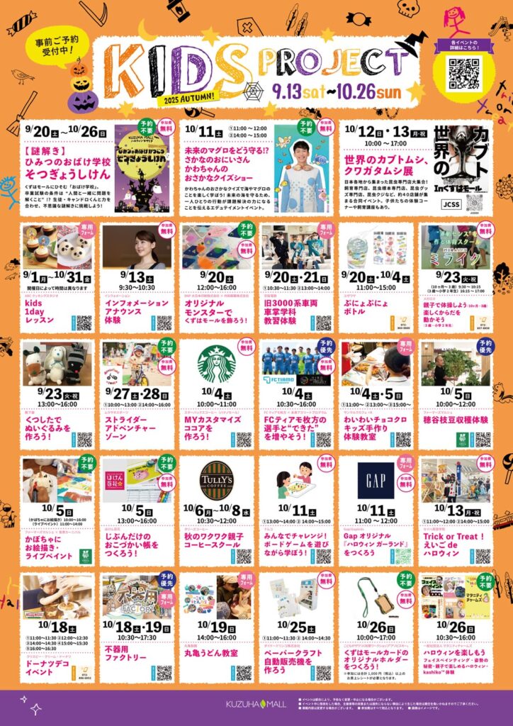 京阪樟葉駅前の商業施設「くずはモール」にて毎年開催されている人気イベント「キッズプロジェクト」のデザインと事務局を、2025年も引き続き担当させていただきました。