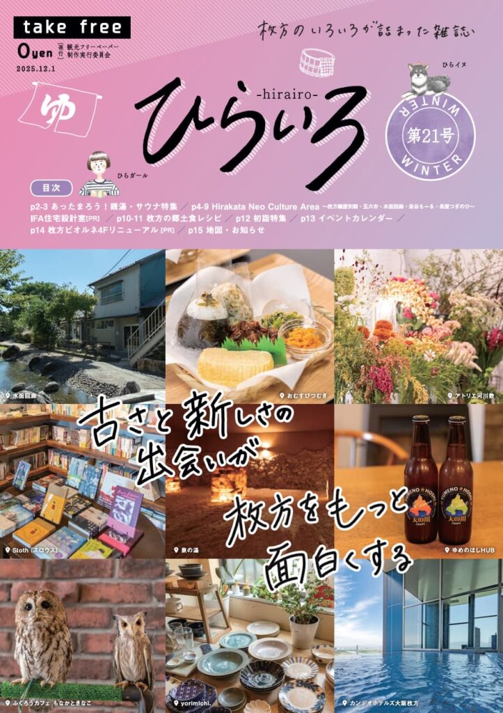枚方市役所、枚方T-SITE、枚方文化観光協会が共同で制作するフリーペーパー「ひらいろ21号」の撮影・執筆・デザイン・編集を担当させていただきました。